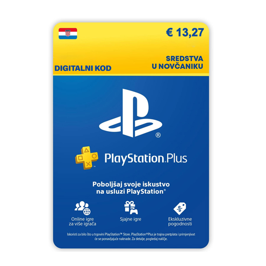 PSN Hrvatska - Digitalni vaucer 13,27€ (100 Kuna) Sa PSN karticom možete sebi dopuniti balans na Playstation Store-u, koji u svojoj obimnoj kolekciji obuhvata PlayStation 5 vlasnicima 20+ PS4 titla bez dodatnih naplata kao što su : God of War serijal, Resident Evil 7, Crash Bandicoot serijal, Red Dead Redemption 2, Grand Theft Auto serijal itd. Sa svim nostalgičnim klasicima i najnovijim titlovima za PS5, PSN kartica predstavlja siguran način dopune vlastitog balansa kao i odličan poklon za gamere svih uzrasta. PSN karticom možete izbjeći ostavljanje digitalnih tragova sa vašom kreditnom karticom i na najsigurniji način užvati u svim hitovima ove gaming platforme.