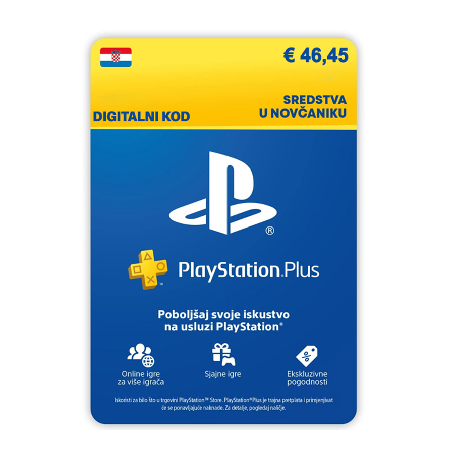 PSN Hrvatska - Digitalni vaucer 46,45€ (350 kuna) Sa PSN karticom možete sebi dopuniti balans na Playstation Store-u, koji u svojoj obimnoj kolekciji obuhvata PlayStation 5 vlasnicima 20+ PS4 titla bez dodatnih naplata kao što su : God of War serijal, Resident Evil 7, Crash Bandicoot serijal, Red Dead Redemption 2, Grand Theft Auto serijal itd. Sa svim nostalgičnim klasicima i najnovijim titlovima za PS5, PSN kartica predstavlja siguran način dopune vlastitog balansa kao i odličan poklon za gamere svih uzrasta. PSN karticom možete izbjeći ostavljanje digitalnih tragova sa vašom kreditnom karticom i na najsigurniji način užvati u svim hitovima ove gaming platforme.
