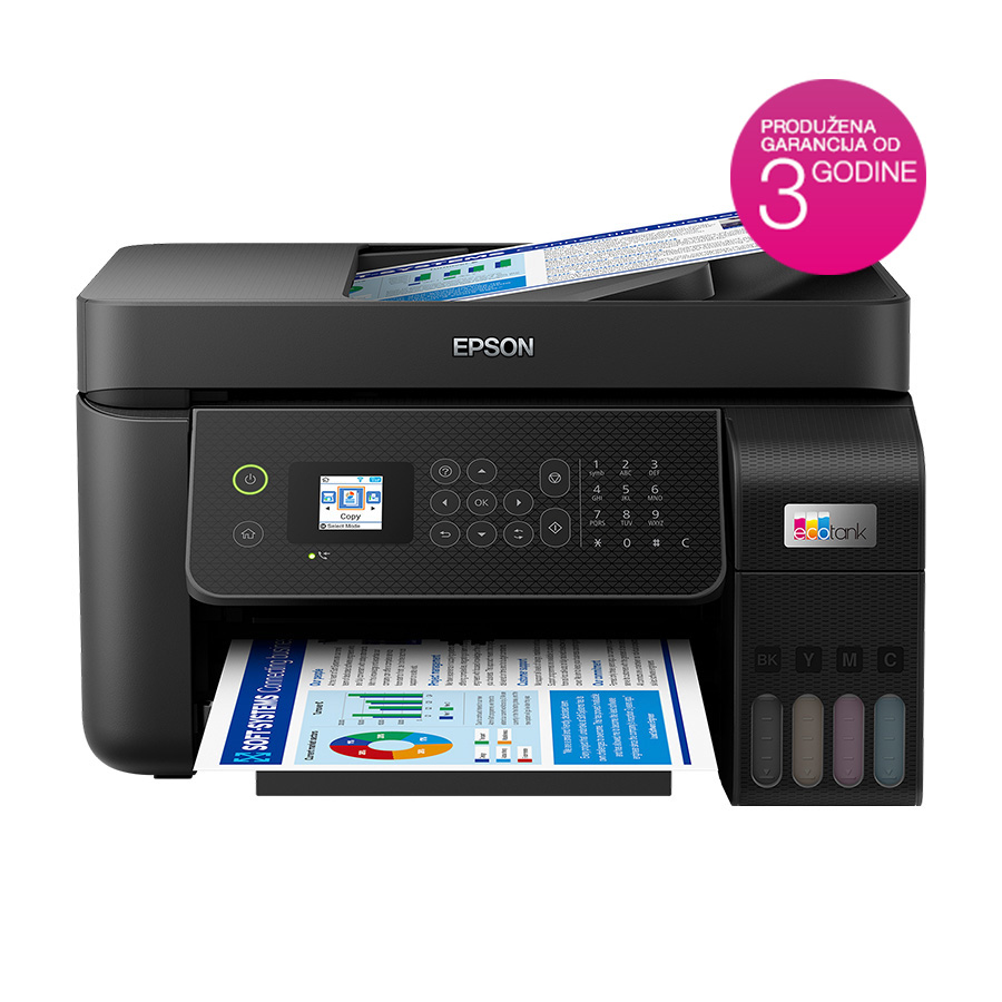 Printer EPSON EcoTank L5290 print/copy/scan/fax.Rezolucija 5760 x1440 dpi. 33str/min Monokrom. 15str/min Colour.USB, WiFi, WiFi Direct.LAN. tinte 103