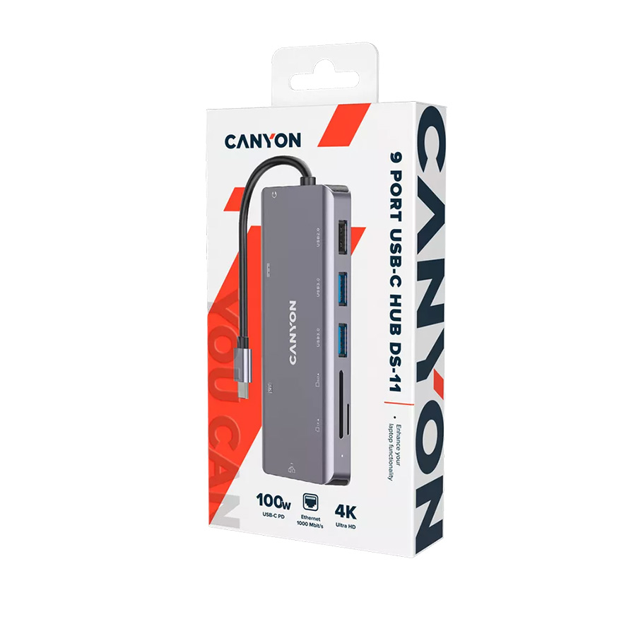 Docking station CANYON DS-11, 9 in 1 USB C hub, HDMI, Ethernet, PD, USB3.0, USB 2.0 SD, audio jack