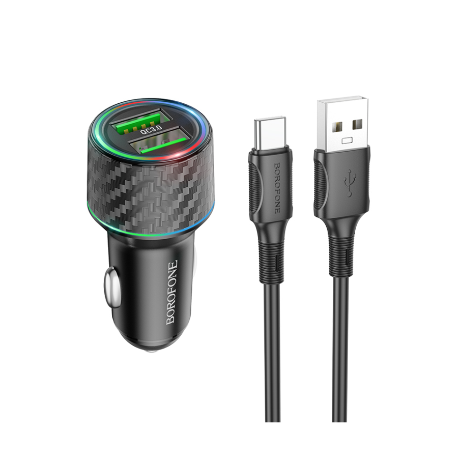 Auto Punjač sa kablom 1m USB to Type-C BOROFONE BZ21A Brilliant 36W dual port QC3.0 2xUSB car set black