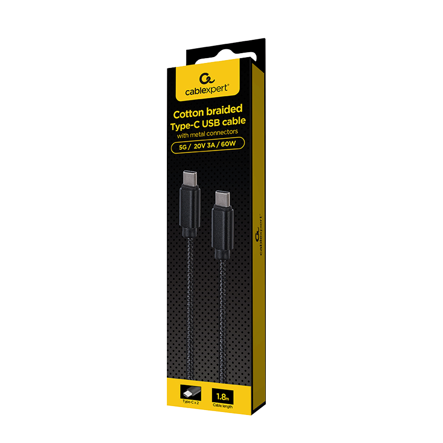 USB 2.0 kabl Type-A to Type-C sa metalnim konektorima CCDB-mUSB2B-CMCM-6, 1,8 m, crne boje