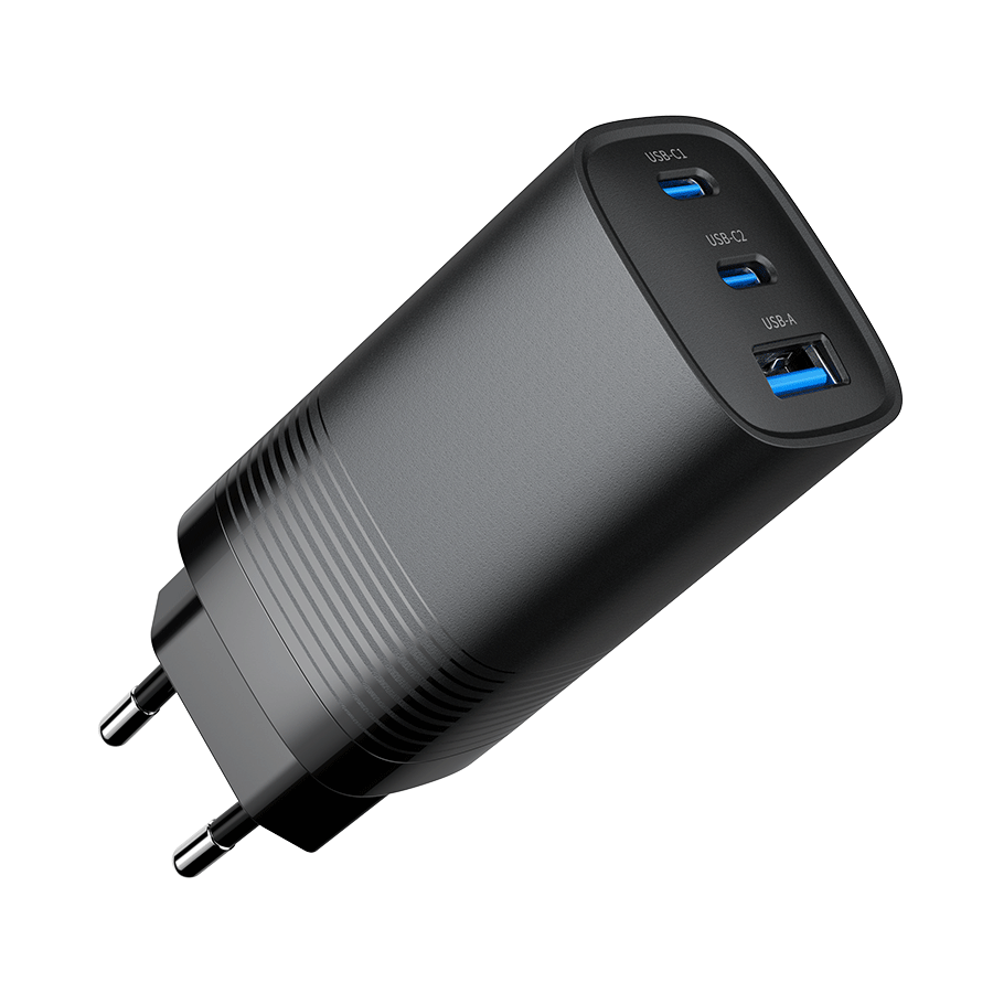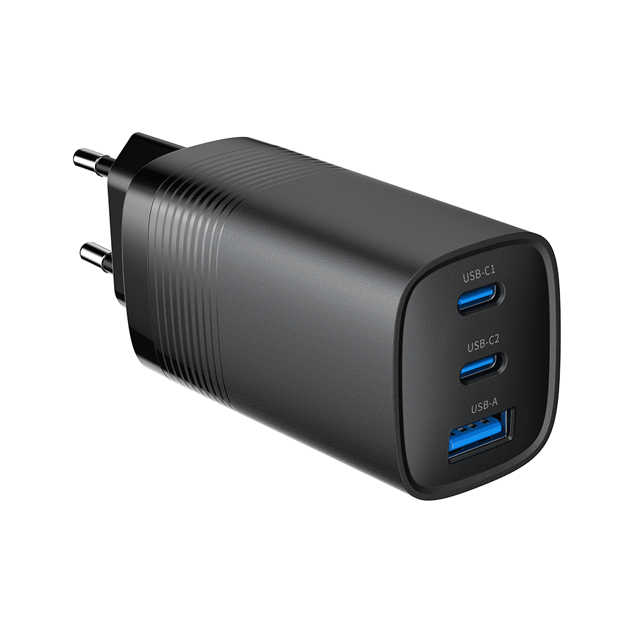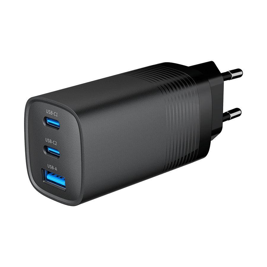 USB punjač 2xType-C + 1xUSB-A fast charger, 65W PD, back GEMBIRD, TA-UC-PDQC65-01-BK