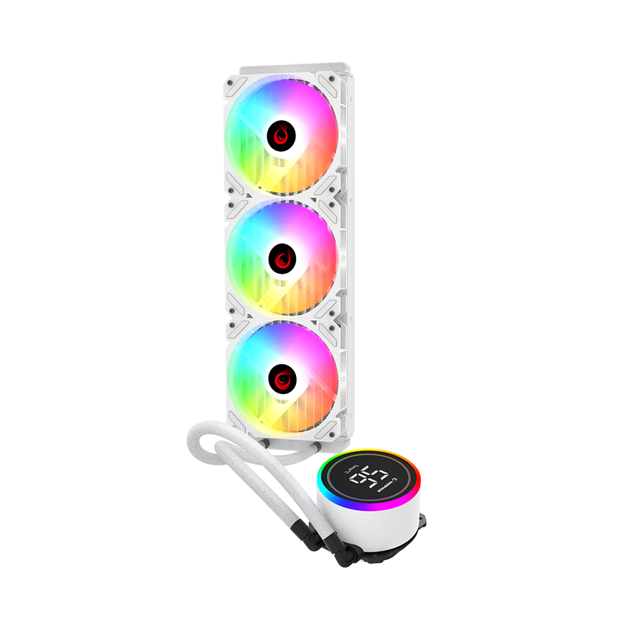 - CPU hladnjak AIO Liquid RAMPAGE HELIOS C17 White 12cm Fan Temperature Display Intel LGA1700/AMD AM5 ARGB 360mm Liquid Cooling CPU Fan 40918