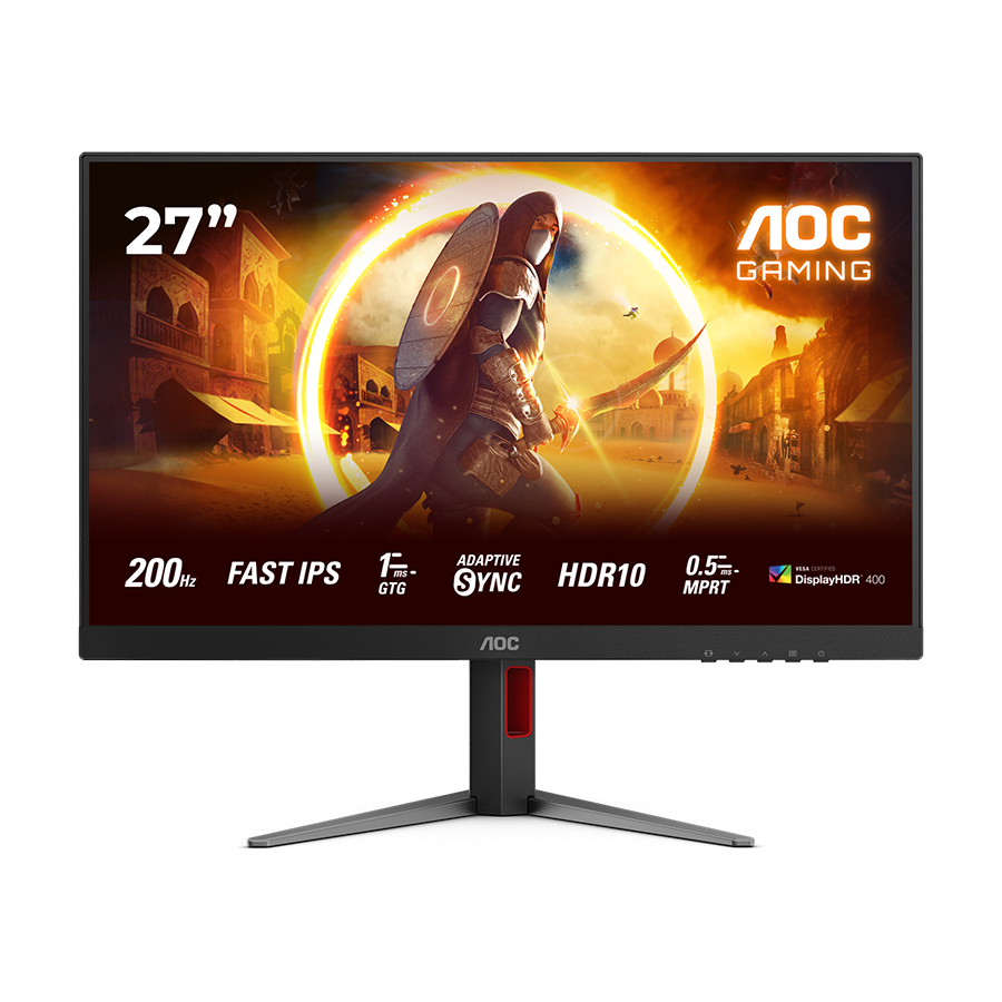 AOC Gaming Monitor 27G4HA 27" 200Hz Fast IPS, 1920x1080 FHD, 0.5ms MPRT / 1ms GtG, 1000:1, 178/178, Adaptive Sync / G-Sync Compatible, HDR10, 2xHDMI 2.0 / DP 1.4 / Audio Out, 3-sides frameless, Black-Red, Full Ergo, 3y