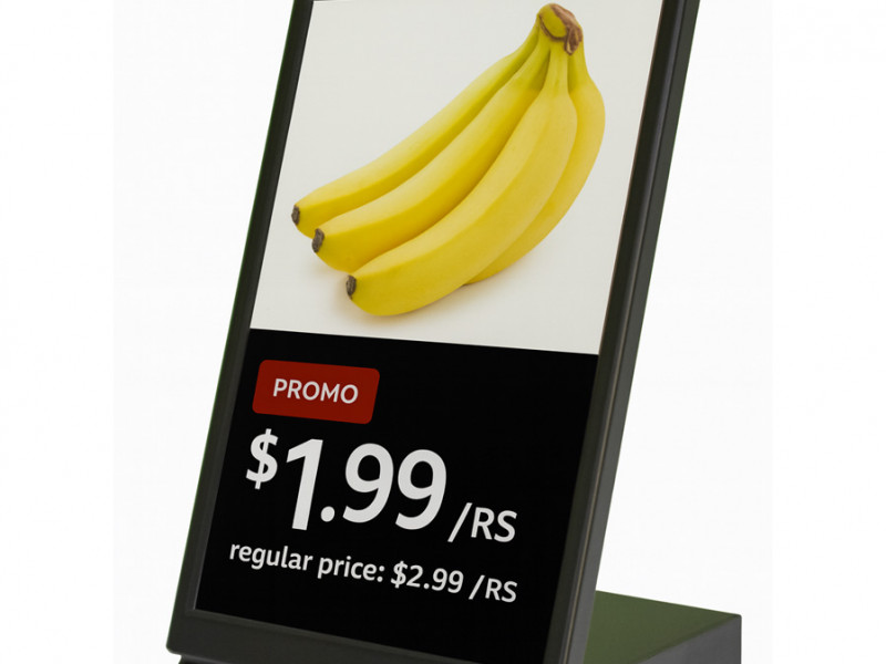 LCD HD elektronski ekran od 10.1 inča s WiFi i Bluetooth povezivanjem. Radi na baterije, savršen za prikaz cijena, promocija i informacija u maloprodaji i ugostiteljstvu.